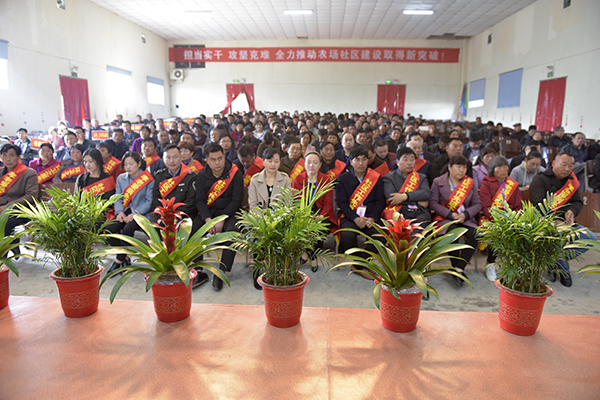 大會(huì)在莊嚴(yán)的國(guó)歌聲中宣告開幕,社管會(huì)常務(wù)副主任朱立榮作了題為《擔(dān)當(dāng)實(shí)干 攻堅(jiān)克難 全力推動(dòng)農(nóng)場(chǎng)社區(qū)建設(shè)取得新突破》的工作報(bào)告,回顧總結(jié)了2017年工作的成績(jī)和經(jīng)驗(yàn),分析歸納了社區(qū)建設(shè)中存在的困難和矛盾,明確提出了2018年工作的總體要求、主要目標(biāo),強(qiáng)調(diào)一要完善居民自治體系,提升社區(qū)治理水平;二要夯實(shí)基礎(chǔ)管理工作,提升社區(qū)行政效能;三要強(qiáng)化社區(qū)功能建設(shè),提升社區(qū)服務(wù)水平;四要加強(qiáng)社區(qū)環(huán)境治理,建設(shè)幸福美好家園;五要推進(jìn)社會(huì)職能改革,確保完成目標(biāo)任務(wù);六要?jiǎng)?chuàng)新黨建工作格局,發(fā)揮政治引領(lǐng)作用。大會(huì)以舉手表決的形式一致通過了上述報(bào)告及城鎮(zhèn)管理和環(huán)境保護(hù)兩個(gè)辦法,沈會(huì)生宣讀關(guān)于社區(qū)工作報(bào)告的決議。會(huì)上,各居委會(huì)及相關(guān)單位遞交了社區(qū)管理目標(biāo)責(zé)任狀或共駐共建協(xié)議。紀(jì)委書記、工會(huì)主席韓躍武宣讀社區(qū)表彰決定,對(duì)2017年度防違治違工作先進(jìn)單位、環(huán)衛(wèi)工作先進(jìn)單位以及孝老愛親先進(jìn)個(gè)人、志愿服務(wù)先進(jìn)個(gè)人、文明居民、環(huán)衛(wèi)之星和社區(qū)工作先進(jìn)個(gè)人等進(jìn)行了表彰并頒獎(jiǎng)。會(huì)上,社會(huì)事業(yè)科科長(zhǎng)陳云祥作了題為《勇于擔(dān)當(dāng)抓落實(shí) 強(qiáng)化執(zhí)行促發(fā)展》的交流發(fā)言,健康居委會(huì)主任李永新作了題為《創(chuàng)新社區(qū)治理 共建幸福家園》的交流發(fā)言,六支居委會(huì)主任竇同春作了題為《搶抓機(jī)遇 乘勢(shì)作為 全力打造“美麗鄉(xiāng)村”金名片》的交流發(fā)言。