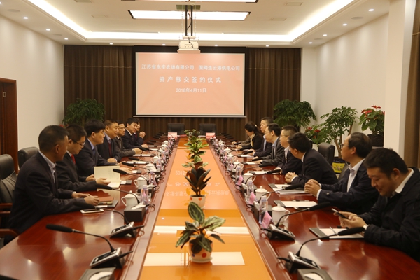 4月11日上午,江蘇省東辛農(nóng)場有限公司與國網(wǎng)連云港供電公司在東辛賓館一樓會議室舉行資產(chǎn)移交簽約儀式。國網(wǎng)連云港供電公司黨委書記、副總經(jīng)理吳旺東、副總經(jīng)理藺華、東辛農(nóng)場有限公司黨委書記、董事長、總經(jīng)理韓中書、黨委副書記、紀委書記、監(jiān)事會主席王信學、副總經(jīng)理徐中兵、劉春利及雙方相關單位、部門負責人參加簽約儀式。國網(wǎng)連云港供電公司代表藺華、東辛農(nóng)場有限公司代表王信學在資產(chǎn)移交協(xié)議上簽字。