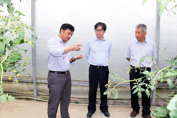 黃旭堂一行深入到農(nóng)場(chǎng)有機(jī)農(nóng)莊連棟大棚、設(shè)施鋼架大棚內(nèi),查看當(dāng)前在田西瓜、甜瓜、櫻桃番茄、水果黃瓜、板栗南瓜的長勢(shì)長相,與有機(jī)農(nóng)莊負(fù)責(zé)人進(jìn)行了深入細(xì)致的交流,詳細(xì)了解有機(jī)農(nóng)莊瓜果蔬菜的種植品種、生產(chǎn)技術(shù)、市場(chǎng)銷售等情況。他親口品嘗了櫻桃番茄的口感,認(rèn)為酸甜比例適當(dāng),品質(zhì)、品相在市場(chǎng)上具有充分的競(jìng)爭力。黃旭堂對(duì)有機(jī)農(nóng)莊生產(chǎn)的有機(jī)瓜果蔬菜的口感、品質(zhì)表示充分肯定,他認(rèn)為有機(jī)農(nóng)莊在新品種引進(jìn)示范上的作用凸顯,?港農(nóng)場(chǎng)獨(dú)特的沙性土壤及規(guī)范的有機(jī)生產(chǎn)操作流程提升了瓜果蔬菜品質(zhì),希望有機(jī)農(nóng)莊繼續(xù)走精品化、特色化道路,加強(qiáng)與市場(chǎng)對(duì)接,找準(zhǔn)市場(chǎng)定位,打響自身品牌,提升經(jīng)濟(jì)效益。期待能與?港農(nóng)場(chǎng)在優(yōu)良種苗生產(chǎn)、瓜果蔬菜基地打造上有所合作。