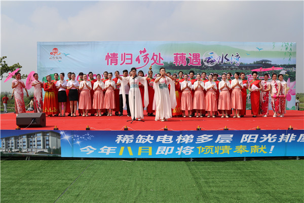 隨后大家一起觀看了古典舞《荷花頌》、葫蘆絲二重奏《再唱山歌給黨聽(tīng)》、武術(shù)表演《精忠報(bào)國(guó)》、經(jīng)典古詩(shī)詞詠唱《使至塞上》、歌曲對(duì)唱等自編自演的節(jié)目表演贏得了現(xiàn)場(chǎng)嘉賓及游客的陣陣掌聲。演出現(xiàn)場(chǎng)還穿插了微信紅包、幸運(yùn)游客抽獎(jiǎng)等互動(dòng)環(huán)節(jié),吸引了眾多游客現(xiàn)場(chǎng)參與,為荷花節(jié)聚集了人氣。