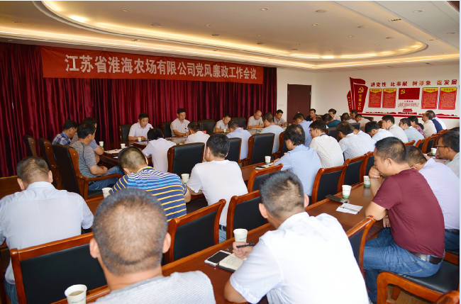 9月21日下午,淮海農(nóng)場有限公司在機關五樓會議室召開黨風廉政工作會議,農(nóng)場公司黨委副書記,董事長、總經(jīng)理單祥忠主持會議并提要求,在場的淮海領導王燦明、孫司正、陳海軍、孫國祥出席會議,農(nóng)場和分公司機關及基層單位科級助理以上人員、駐場單位負責人等50多人參加了會議。