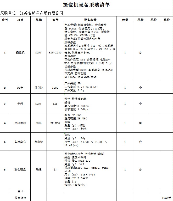 江蘇省新洋農(nóng)場有限公司攝像機(jī)設(shè)備采購招標(biāo)公示公告