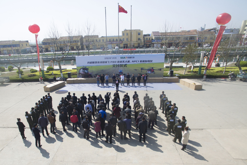 3月26日,蘇墾農(nóng)發(fā)臨海分公司辦公樓前彩旗飛舞、鞭炮齊鳴,農(nóng)機駕駛員自行購置的21臺極飛P80農(nóng)業(yè)無人機、5臺自駕儀的接機儀式隆重舉行。臨海領(lǐng)導、廣州極飛科技公司代表及蘇墾農(nóng)發(fā)臨海分公司相關(guān)人員參加活動。臨海分公司副總經(jīng)理王學健主持活動。