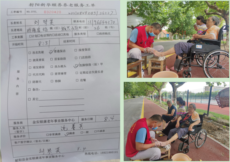 交談中,這位居住在農(nóng)場(chǎng)城西居委會(huì)振興小區(qū)26號(hào),88歲的居民劉琴英,在享受到一個(gè)小時(shí)的居家普通保潔和洗腳修指(趾)甲服務(wù)后很是開心?!案兄x金實(shí)銀康和農(nóng)場(chǎng)社區(qū)居家養(yǎng)老給我們老年人帶來(lái)的服務(wù),感謝護(hù)理員沈善兵對(duì)我提供無(wú)微不至的關(guān)心服務(wù)。”