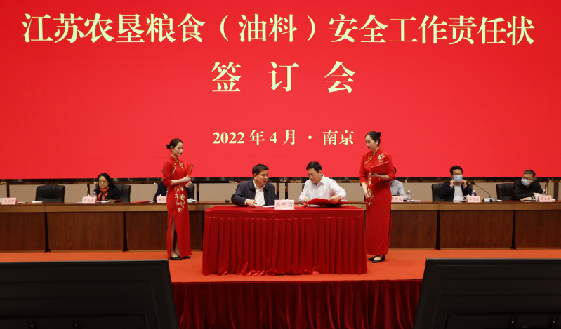 為進一步壓實糧食(油料)安全工作責任,全面完成全年糧食(油料)生產目標任務,4月28日下午,集團公司召開糧食(油料)安全責任狀簽訂會。集團公司黨委書記、董事長魏紅軍出席會議,黨委副書記、總經理胡兆輝出席會議并講話,黨委副書記姚準明主持會議并宣讀江蘇農墾糧食(油料)安全工作領導小組組成人員名單,黨委委員、副總經理姜建友,黨委委員、總會計師劉克英,黨委委員、紀委書記李旭東,黨委委員、副總經理王立新,黨委委員、工會主席楊義林出席會議。