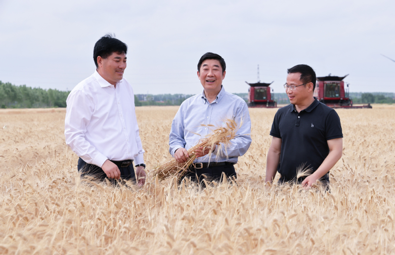胡兆輝首先考察了大麥收割現場以及小麥、油菜長勢情況,他指出,糧食安全是“國之大者”,要深刻認識國家實施糧食安全戰(zhàn)略的重要性和必要性,切實扛起保障糧食安全“國家隊”的職責使命。新洋夏熟“三大作物”大麥、小麥和油菜長勢喜人、豐收在望,“豐產、豐收、增效”要素集聚、優(yōu)勢凸顯,要搶抓當前晴好天氣、借勢當前利好局面,乘勝追擊、穩(wěn)扎穩(wěn)打,在夏收、夏種、夏管等關鍵技術措施上下足功夫,質量并舉確保夏糧顆粒歸倉,精細管理力促水稻穩(wěn)產高產,誓奪“三夏”工作全面勝利,為蘇墾農發(fā)股份公司和集團公司作貢獻。