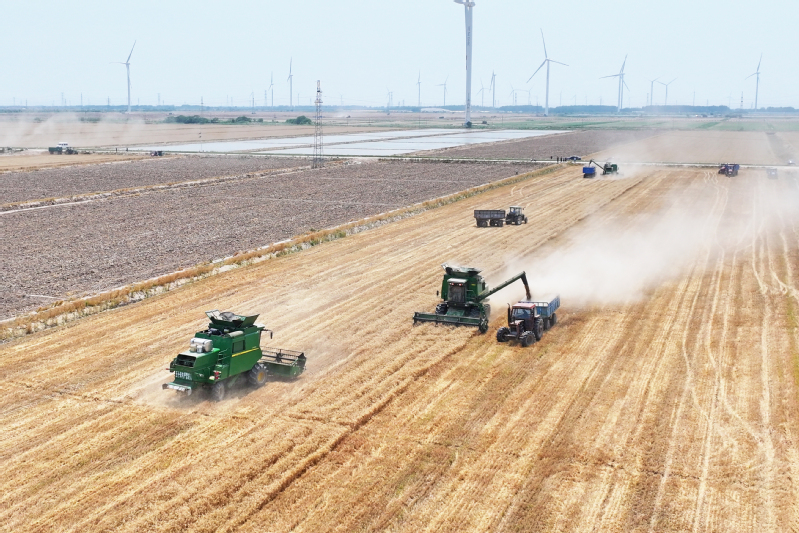 2025年5月29日,鹽城射陽縣江蘇農(nóng)墾臨海農(nóng)場順泰生產(chǎn)區(qū)麥浪涌動,大型聯(lián)合收割機轟鳴作業(yè),率先拉開當?shù)叵氖招←溞蚰?。近年來,農(nóng)場黨委以墾地合作推動發(fā)展,通過技術(shù)賦能與鹽堿地改良,昔日鹽堿地蛻變?yōu)椤皣嵓Z田”,為鄉(xiāng)村振興打造國有農(nóng)業(yè)新樣板。