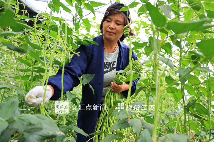 9月17日,連云港市海州區(qū)的江蘇農(nóng)墾崗埠農(nóng)場(chǎng),種植戶在溫室大棚里采收成熟的豇豆,準(zhǔn)備供應(yīng)市場(chǎng)銷(xiāo)售。徐衛(wèi) 攝 視覺(jué)江蘇網(wǎng)供圖
