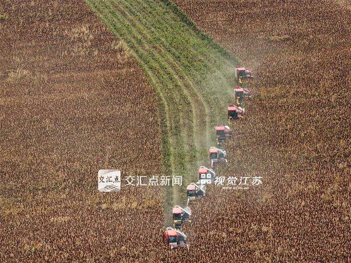 9月21日,江蘇農(nóng)墾江心沙農(nóng)場(chǎng)位于金壇長(zhǎng)蕩湖和錢(qián)資湖畔外拓基地的8000余畝紅高粱全面開(kāi)鐮收割。許叢軍 袁偉 攝 視覺(jué)江蘇網(wǎng)供圖