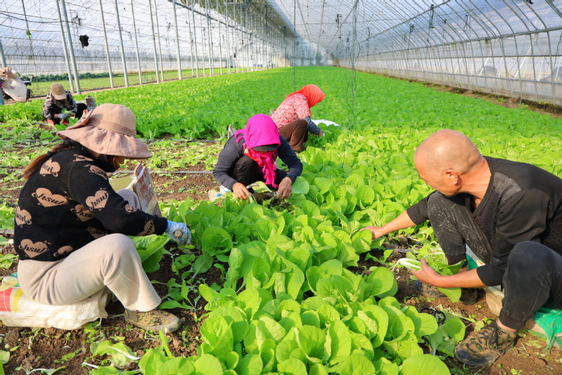 10月23日,江蘇省連云港市海州區(qū)的江蘇農(nóng)墾崗埠農(nóng)場,訂單蔬菜喜獲豐收。菜農(nóng)們在大棚里采收整理新鮮的蔬菜,并進行打包稱重,田間地頭一片繁忙景象。近年來,當(dāng)?shù)卮罅Πl(fā)展規(guī)?;笈锸卟朔N植,采取“市場+訂單+農(nóng)戶”的方式,促進菜農(nóng)增收。