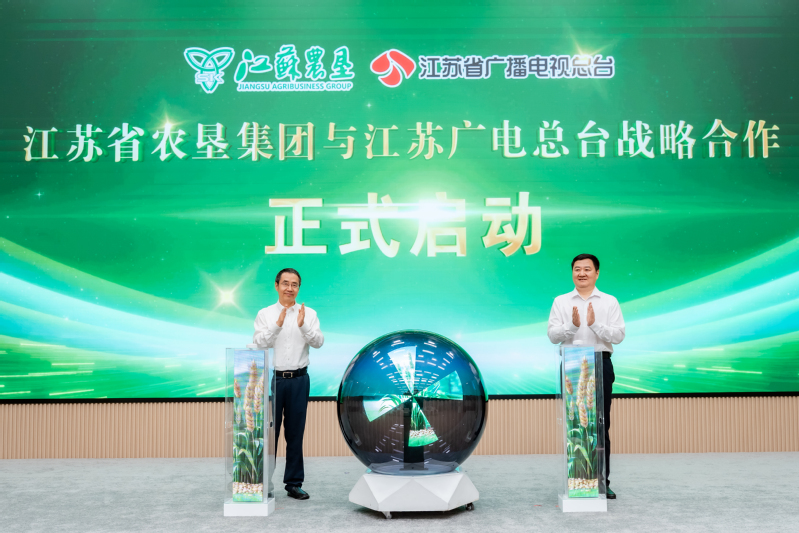 9月30日上午,江蘇省農(nóng)墾集團(tuán)有限公司與江蘇省廣播電視總臺(tái)在南京舉行戰(zhàn)略合作簽約儀式,并共同發(fā)布“蘇墾優(yōu)品”品牌。江蘇省農(nóng)墾集團(tuán)黨委書記、董事長(zhǎng)吳本輝,黨委副書記朱浩,黨委委員、副總經(jīng)理鄧國(guó)新;江蘇廣電總臺(tái)黨委書記、臺(tái)長(zhǎng)、集團(tuán)董事長(zhǎng)葛萊,黨委副書記、副臺(tái)長(zhǎng)、集團(tuán)總經(jīng)理陸峰,黨委委員、副臺(tái)長(zhǎng)、集團(tuán)副總經(jīng)理季建南等領(lǐng)導(dǎo)出席活動(dòng)。葛萊在致辭中表示,江蘇廣電總臺(tái)與江蘇省農(nóng)墾集團(tuán)兩大省屬國(guó)有企業(yè)強(qiáng)強(qiáng)聯(lián)手,是貫徹總書記重大要求的自覺行動(dòng),也是落實(shí)省委省政府決策部署、賦能江蘇現(xiàn)代農(nóng)業(yè)發(fā)展的生動(dòng)實(shí)踐。雙方將聯(lián)合宣傳江蘇農(nóng)業(yè)發(fā)展成就,合力講好江蘇農(nóng)墾品牌故事,攜手探索“視聽+農(nóng)業(yè)”產(chǎn)業(yè)模式,為江蘇農(nóng)業(yè)現(xiàn)代化注入新的強(qiáng)勁動(dòng)能。吳本輝在致辭中表示江蘇農(nóng)墾歷經(jīng)73年發(fā)展,已成為以現(xiàn)代農(nóng)業(yè)為核心,一二三產(chǎn)業(yè)融合發(fā)展的省屬大型國(guó)有企業(yè)?!疤K墾優(yōu)品”作為今年集團(tuán)重點(diǎn)打造的平臺(tái)品牌,堅(jiān)持綠色、安全、高品質(zhì)的標(biāo)準(zhǔn),致力于滿足消費(fèi)者對(duì)健康餐桌和美好生活的需求。期待雙方緊密協(xié)同、資源互補(bǔ),共同打造全國(guó)領(lǐng)先的農(nóng)業(yè)品牌建設(shè)典范,助力江蘇品牌強(qiáng)省戰(zhàn)略實(shí)施,為推動(dòng)江蘇農(nóng)業(yè)現(xiàn)代化走在全國(guó)前列貢獻(xiàn)品牌力量。發(fā)布會(huì)上,朱浩詳細(xì)介紹了“蘇