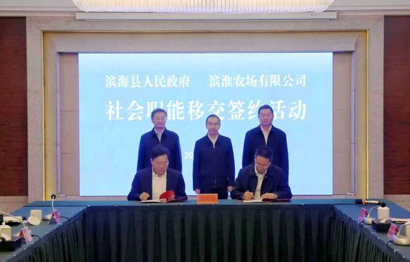 10月24日上午,濱淮農(nóng)場(chǎng)社會(huì)職能移交簽約活動(dòng)在濱海舉行。集團(tuán)黨委書記、董事長(zhǎng)吳本輝,濱??h委書記吳啟標(biāo),集團(tuán)黨委委員、副總經(jīng)理劉衛(wèi)華,總經(jīng)理助理姚海洪,濱海縣副縣長(zhǎng)李品出席簽約活動(dòng)。濱??h政協(xié)主席王海榮主持活動(dòng)。吳本輝表示,推進(jìn)企業(yè)辦社會(huì)職能改革,是新一輪國(guó)企改革的重要接續(xù)工作。濱淮實(shí)現(xiàn)農(nóng)場(chǎng)辦社會(huì)職能移交屬地管理,是雙方互信互利互贏的重要成果,也標(biāo)志著墾地融合發(fā)展邁出堅(jiān)實(shí)步伐。濱淮農(nóng)場(chǎng)要切實(shí)強(qiáng)化責(zé)任意識(shí),加強(qiáng)與濱??h委、縣政府的溝通匯報(bào),有力有序推進(jìn)各項(xiàng)社會(huì)職能的移交工作。吳本輝指出,近年來,濱??h錨定經(jīng)濟(jì)指標(biāo)“總量靠前、增幅領(lǐng)先”、總體位次“沖刺全市第一方陣”的目標(biāo),以滿格狀態(tài)主動(dòng)作為、勇挑大梁,持續(xù)放大區(qū)位、產(chǎn)業(yè)、資源、生態(tài)等優(yōu)勢(shì),經(jīng)濟(jì)社會(huì)發(fā)展呈現(xiàn)出高歌猛進(jìn)、勢(shì)頭十足的良好態(tài)勢(shì)。當(dāng)前,江蘇農(nóng)墾正在深化落實(shí)“三大建設(shè)”,全力支持所屬農(nóng)場(chǎng)融入地方發(fā)展,培育壯大特色產(chǎn)業(yè)。希望以此次簽約為契機(jī),進(jìn)一步發(fā)揮墾地產(chǎn)業(yè)鏈協(xié)同優(yōu)勢(shì),推動(dòng)資源高效整合、深度融合,共同培育特色鮮明的農(nóng)業(yè)產(chǎn)業(yè)集群,打造墾地融合的“濱海樣板”,為推動(dòng)沿海地區(qū)高質(zhì)量發(fā)展、助力江蘇農(nóng)業(yè)現(xiàn)代化走在前作出新的更大貢獻(xiàn)。吳啟標(biāo)代表