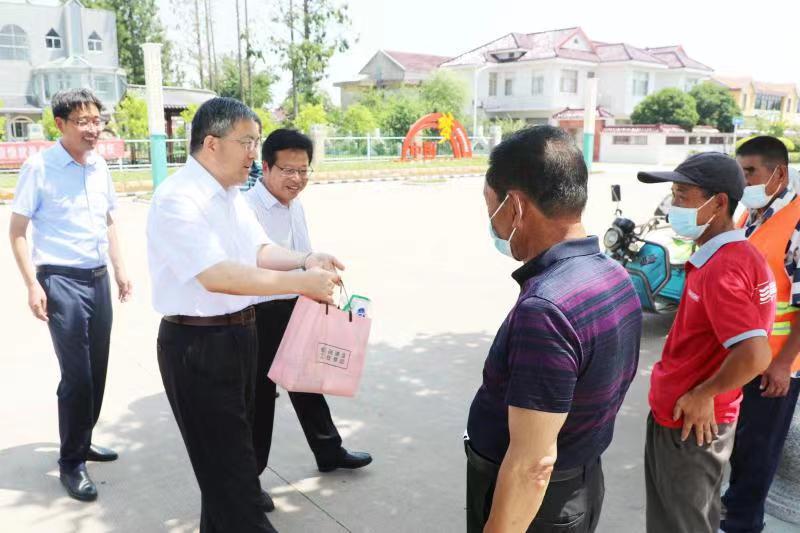 7月13日,集團(tuán)公司黨委委員、工會主席楊義林到臨海為堅(jiān)守生產(chǎn)一線的職工送清涼,農(nóng)場公司黨委領(lǐng)導(dǎo)班子成員以及片區(qū)財(cái)務(wù)總監(jiān)陪同。楊義林先后來到河濱公園、健康小屋核酸檢測點(diǎn)和農(nóng)機(jī)總站,向奮戰(zhàn)在基層一線的環(huán)衛(wèi)職工、疫情防控工作人員和農(nóng)機(jī)駕駛?cè)藛T表示慰問并送上了清涼禮包,親切詢問他們的工作情況。楊義林對高溫下堅(jiān)守的職工表示感謝,囑咐大家在高溫工作時(shí)要加強(qiáng)自我保護(hù)和安全防范,做好防暑降溫,科學(xué)安排作息時(shí)間,保障身體健康。同時(shí)要求臨海做好夏季安全生產(chǎn)和防暑降溫工作,科學(xué)安排一線職工夏季工作時(shí)間,既保證高溫期間農(nóng)業(yè)生產(chǎn),又要維護(hù)廣大職工的安全健康權(quán)益,確保高溫時(shí)節(jié)各項(xiàng)工作平穩(wěn)有序開展。大家紛紛表示,將一如既往、踏踏實(shí)實(shí)做好本職工作,以實(shí)際行動喜迎二十大勝利召開,為建設(shè)美麗臨海作出更大貢獻(xiàn)。