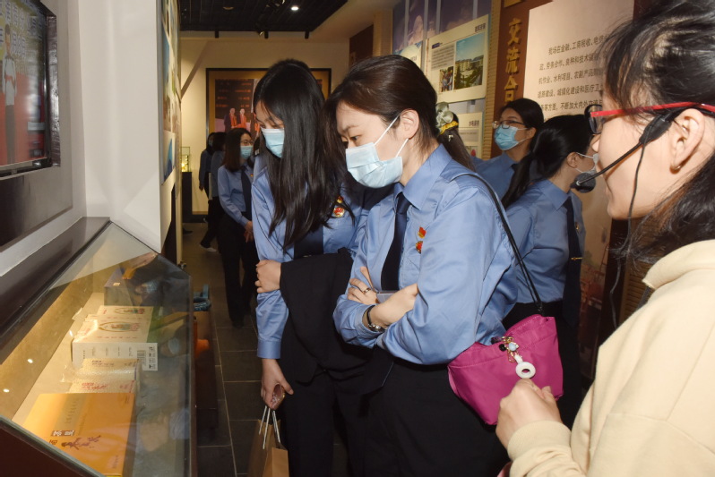 5月20日上午,鹽城市人民檢察院干警一行60余人來到農(nóng)建四師暨淮海農(nóng)場歷史陳列館內(nèi)參觀時(shí),對陳列柜中包裝精美的“渠星”大米很感興趣,紛紛駐足在展柜前觀看。