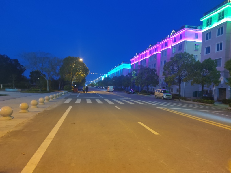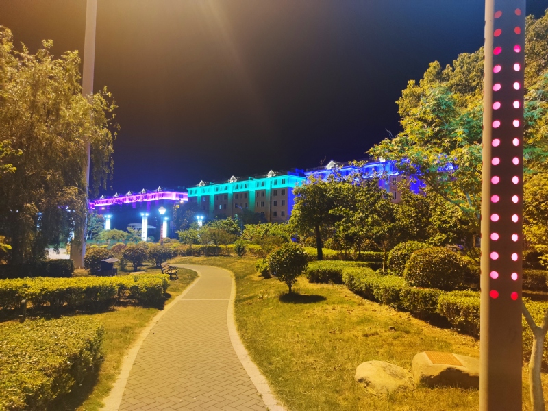 自淮海農(nóng)場去年以來安裝了樓宇燈光后,讓農(nóng)場小城鎮(zhèn)建設(shè)頓時上了一個檔次,美化美奐的燈光讓淮海整個兒變了模樣,凡是到過淮海農(nóng)場的人,都會說這里的夜晚很美——夜幕降臨,三五成群的人們到淮海路上走一走,淮海公園中看一看,看看淮海路上延伸了的樓宇燈光,以及路邊及公園中各種變幻著的色彩,讓生活在這兒了職工居民很是愜意。
