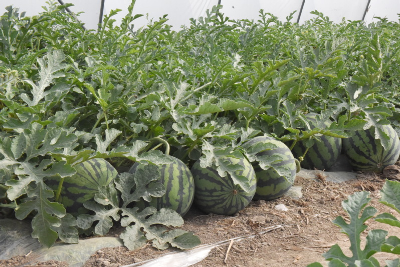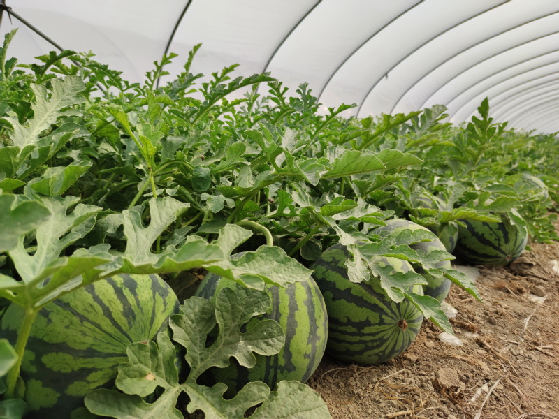 走進(jìn)還沒(méi)有采摘的瓜棚內(nèi),大棚內(nèi)西瓜分栽在棚的兩側(cè),中間的一條小道兩側(cè),座滿了一個(gè)個(gè)碩大的西瓜,簡(jiǎn)直是挨排排地座落在一起,讓人看了十分喜愛(ài)。