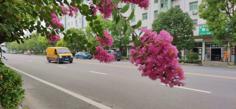 紫薇樹的花期要從6月要一直開放到9月,而目前是最新最艷的時刻。在這鮮花簇?fù)淼募竟?jié)里,我忽而騎車忽而邁步穿梭游弋在這一路紫薇花的世界中,每次都有在美麗的夢境中穿行的感覺,每次總是情不自禁地按動快門細(xì)細(xì)欣賞。