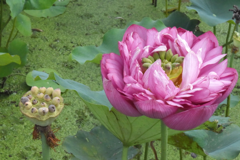 “畢竟西湖六月中,風(fēng)光不與四時同。接天蓮葉無窮碧,映日荷花別樣紅。”游玩在荷花池中,南宋詩人楊萬里的詩仿佛就在耳邊回想, 頓時讓人抒發(fā)著別樣的情懷。荷花盛開季節(jié),生活在農(nóng)場的淮海人,更是把這方美景,融入了自己的生活:你看,農(nóng)場的太極舞蹈隊一大早組團來到盛開著荷花邊,吸氧吧、打太極、跳扇舞、忙攝影,把最好的愿望和美麗的景觀相融合;你瞧,不時地會看到一撥撥不同衣著的人流,沿著荷花中間的碎石小道,徜徉其間,享受著這兒的風(fēng)光韻律;更有許多的攝影發(fā)燒友們,讓荷花仙子們手舉太陽傘,或輕搖羽扇,定格在美好的荷香荷韻中。