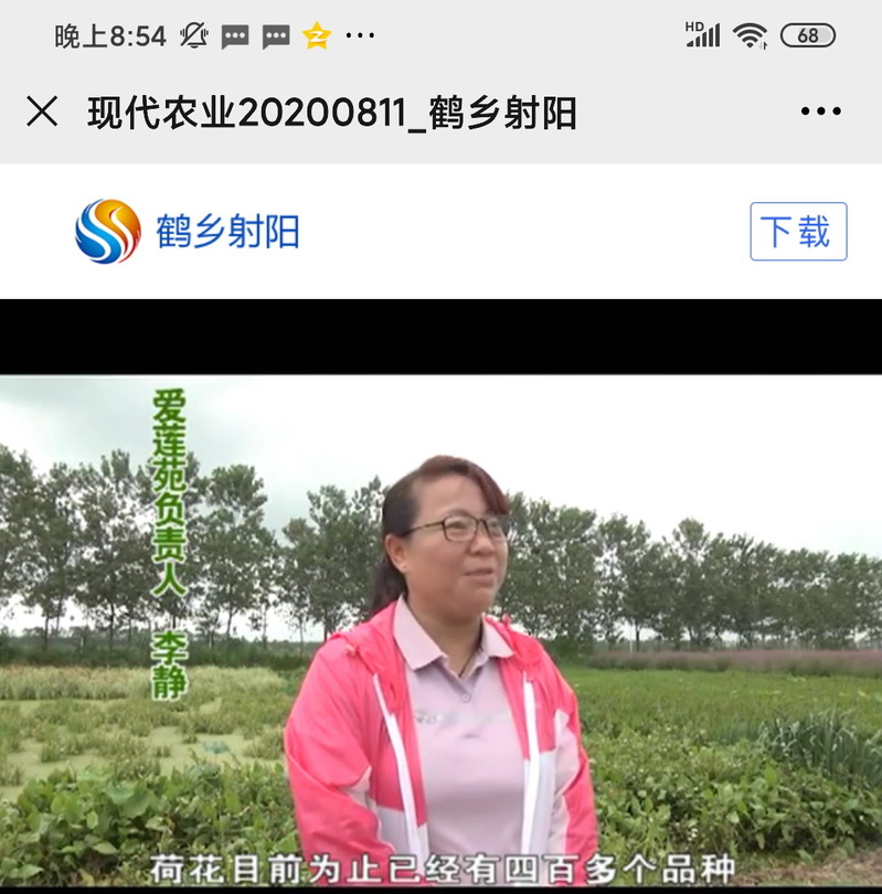 在8月11日射陽鶴鄉(xiāng)新聞現(xiàn)代農(nóng)業(yè)欄目上,播放了一條11分鐘時(shí)長反映愛蓮苑水生花卉的專題節(jié)目,通過射陽電視臺(tái)的新聞采編人員實(shí)時(shí)采訪愛蓮苑的生產(chǎn)現(xiàn)場和向愛蓮苑經(jīng)理李靜、生產(chǎn)經(jīng)理劉清東和員工鏡頭采訪的形式,回憶起愛蓮苑已故創(chuàng)始人李吉厚從8口大缸到140多畝主生產(chǎn)基地的過程,并且通過創(chuàng)新荷花繁育,獲得了10多項(xiàng)中國荷花協(xié)會(huì)舉辦的荷花繁育大獎(jiǎng),還把愛蓮苑的水生花卉種植到了奧運(yùn)會(huì)的鳥巢邊,銷售到了國外的創(chuàng)業(yè)故事。目前愛蓮苑的水生花卉在北京蓮花苑公園、杭州西湖公園、揚(yáng)州廋西湖公園、上省勁辰上植物園和古漪園、銀川花博會(huì)、南京玄武湖公園等著名的公園游園場所,均有來自淮海愛蓮苑生長的荷花等水生花卉品種,也讓淮海的愛蓮苑借科技創(chuàng)新和互聯(lián)網(wǎng)的魅力,走出深閨,讓國內(nèi)外市場所熟識(shí),從而走出了一條外向型經(jīng)濟(jì)的典范。圖為愛蓮苑在射陽現(xiàn)代農(nóng)業(yè)播放的截屏和射陽采編人員在愛蓮苑中進(jìn)行采訪時(shí)的鏡頭。
