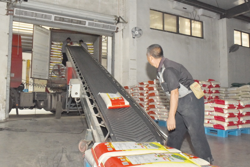 圖為公司搬運(yùn)工正在裝載渠星大米時(shí)的鏡頭。