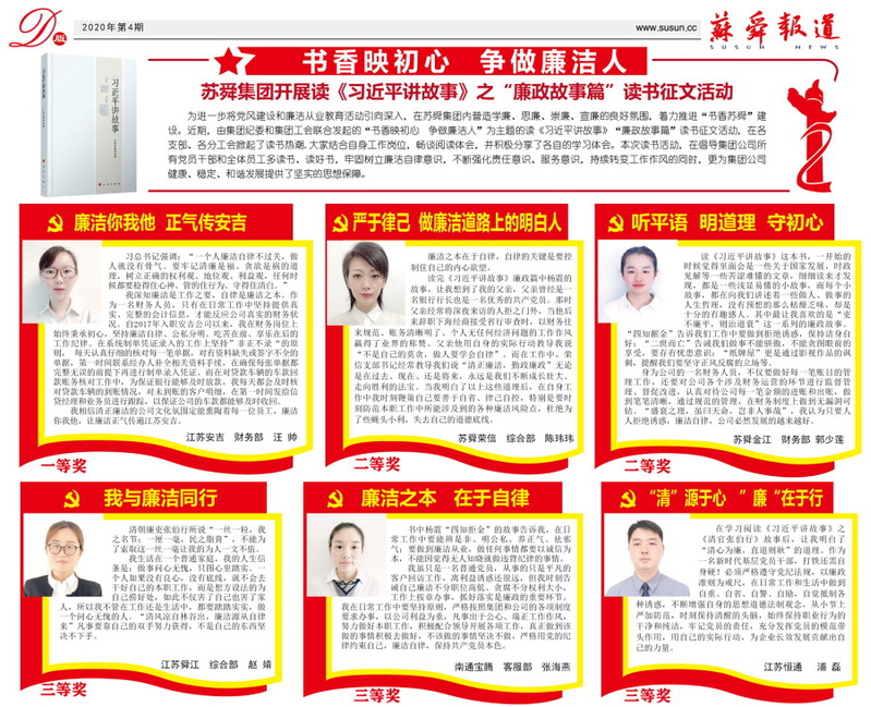 堅(jiān)持“以月促年”,確保見成效。蘇舜公司認(rèn)真總結(jié)此次黨風(fēng)廉潔建設(shè)宣傳月活動(dòng),以《蘇舜報(bào)道》??问郊袌?bào)道了各黨支部形式多樣、內(nèi)容豐富的活動(dòng)內(nèi)容,刊載了多篇優(yōu)秀讀書征文,在全公司內(nèi)營造了學(xué)廉、思廉、崇廉、宣廉的良好氛圍。蘇舜公司將以此次活動(dòng)為契機(jī),持續(xù)推進(jìn)年度全面從嚴(yán)治黨各項(xiàng)工作目標(biāo)實(shí)現(xiàn),不斷提高抓好黨風(fēng)廉潔教育的政治站位和政治自覺,進(jìn)一步鞏固黨風(fēng)廉潔建設(shè)宣傳月活動(dòng)成果,把廉潔教育融入日常各項(xiàng)工作中,不斷完善企業(yè)規(guī)章制度,優(yōu)化工作流程,強(qiáng)化監(jiān)督管理,深化作風(fēng)建設(shè),實(shí)現(xiàn)黨風(fēng)廉潔建設(shè)宣傳教育常態(tài)化、多樣化、制度化,為企業(yè)持續(xù)健康發(fā)展提供堅(jiān)實(shí)的政治思想保障。