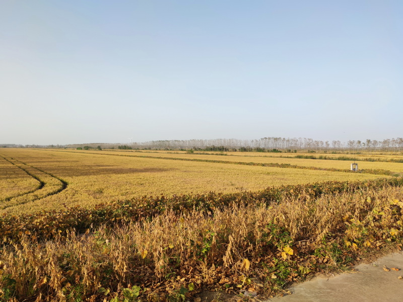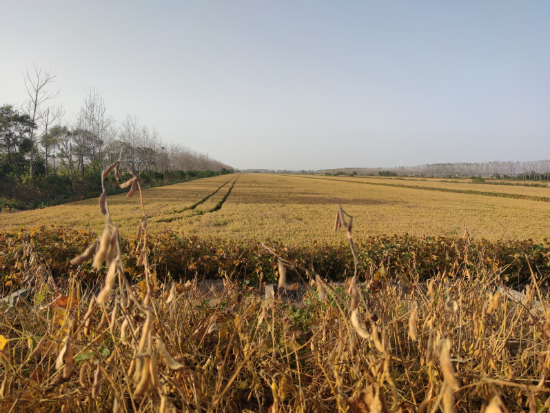 “誰知盤中餐、粒粒皆辛苦”,十邊地里種什么長什么,到時都有收獲。這些黃色的大豆,同時也將水稻田緊緊包裹,也成為了農(nóng)場最美的田園風(fēng)景,也造就了農(nóng)業(yè)職工居民增收的希望。