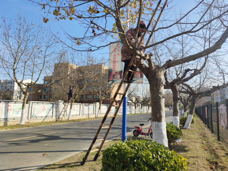 日前,淮海農(nóng)場(chǎng)有限公司除對(duì)綠化帶內(nèi)的低矮灌木正常進(jìn)行造型整容外,還對(duì)綠化樹木冬季修剪也借冬日開啟拉開帷幕,我們看到,在淮海創(chuàng)業(yè)路、振興路、群樂路、方波路的大型梧桐樹木的枝干上,一些農(nóng)場(chǎng)環(huán)衛(wèi)綠化部位的員工正在爬著梯子進(jìn)行樹上修剪,同時(shí)在不破壞整體樹型的前提下,鋸除遮擋監(jiān)控及照明的低垂樹枝來(lái)展開合理修剪。梧樹樹修剪后,他們還對(duì)所有行道樹木進(jìn)入冬眠的紫薇樹等枯枝、雜亂枝等進(jìn)行修剪,為大樹提干之外,還將去除枯死枝、病蟲枝、交叉枝,讓樹木通透,更好地有利于樹木采光通氣,提升樹冠的形象。