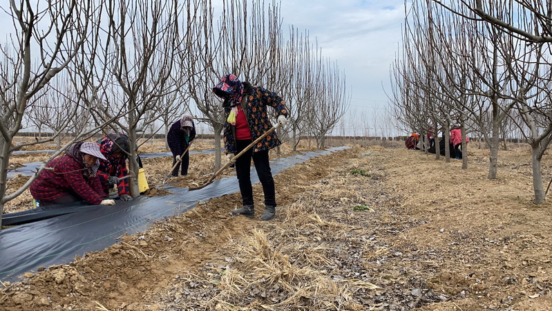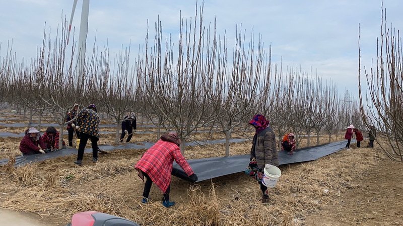 據(jù)悉,該管理所將利用春節(jié)前的20多天的時(shí)間,突擊組織員工依次對果樹下的地面進(jìn)行除草、平整土地、覆蓋防草布和地布固定等程序,確保一次鋪設(shè),全年雜草無憂。圖為果木管理所的員工們正在果園里進(jìn)行鋪設(shè)防草布時(shí)的鏡頭。