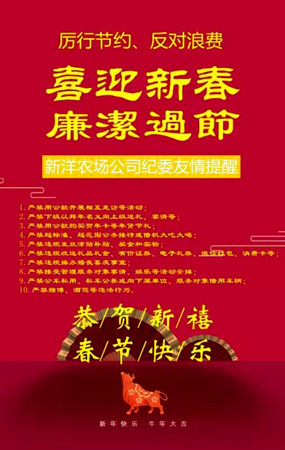 近年來,新洋農(nóng)場有限公司黨委堅(jiān)持實(shí)事求是、依規(guī)依紀(jì)依法,立足崗位,找準(zhǔn)定位,持之以恒正風(fēng)肅紀(jì),全力推動(dòng)黨風(fēng)廉政建設(shè)和反腐敗斗爭取得新成效。