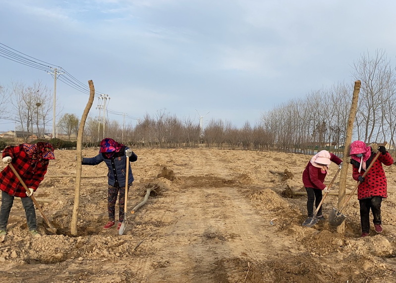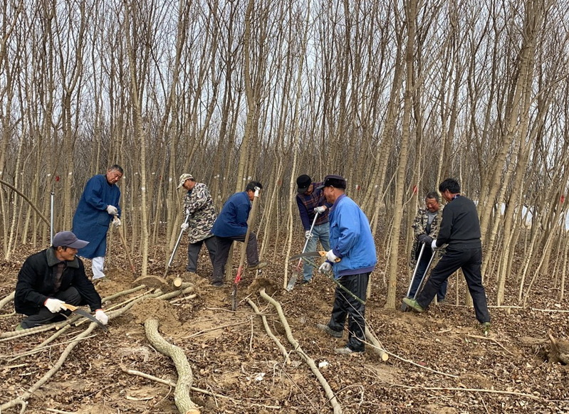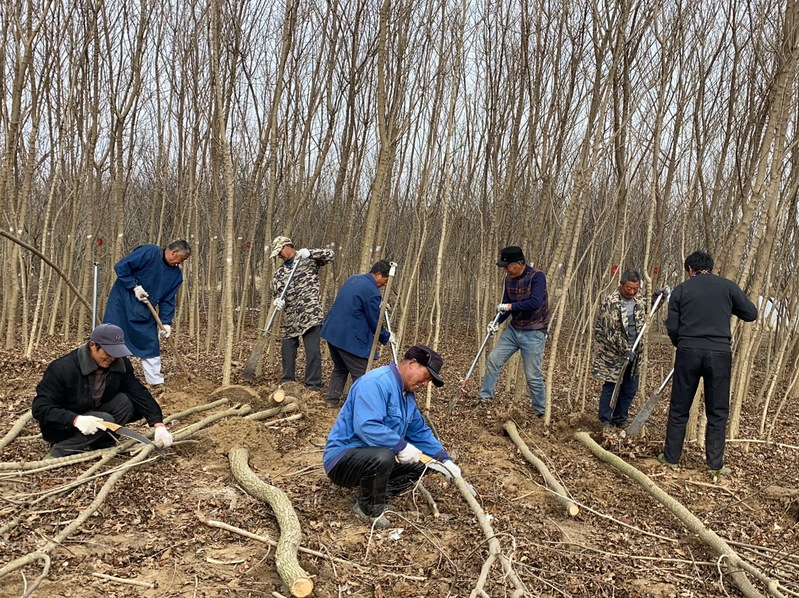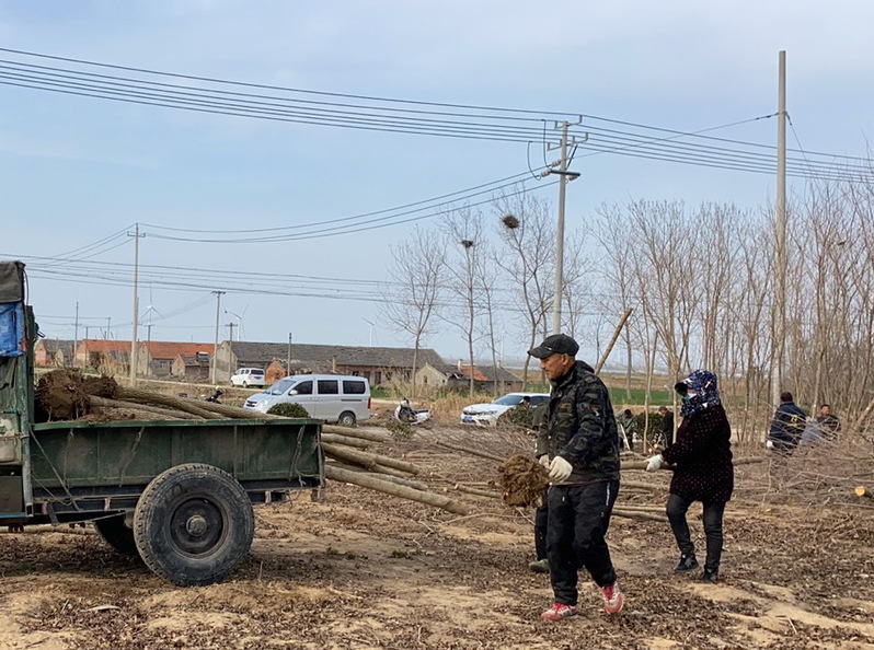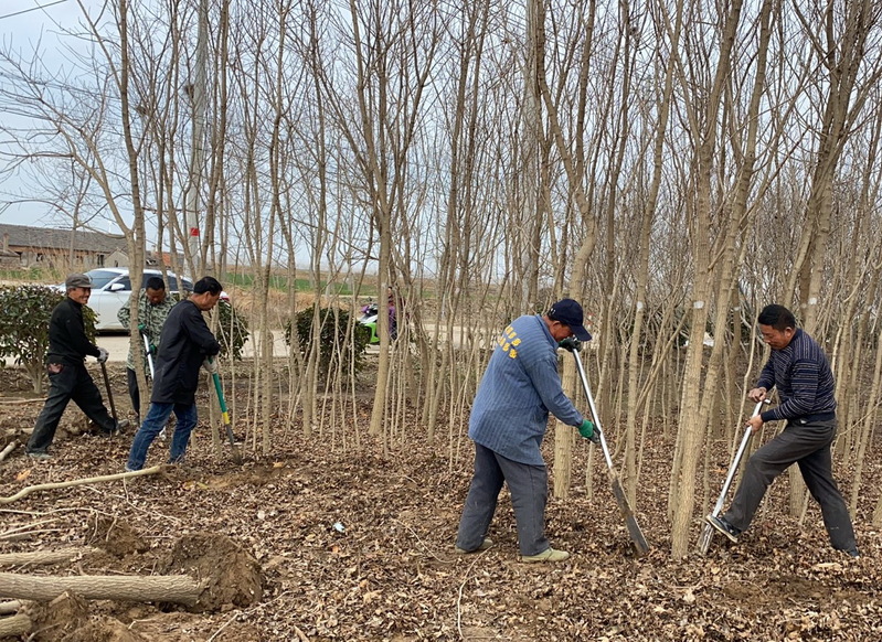 3月3日下午,在淮海農(nóng)場資源開發(fā)管理中心苗木基地內(nèi),近30名員工分布在基地內(nèi)的不同方位,有序地進行五角峰樹苗的開挖、定型、運輸和移栽等一系列的定植工作,為樹苗生長創(chuàng)造出一個優(yōu)良的生長環(huán)境。
