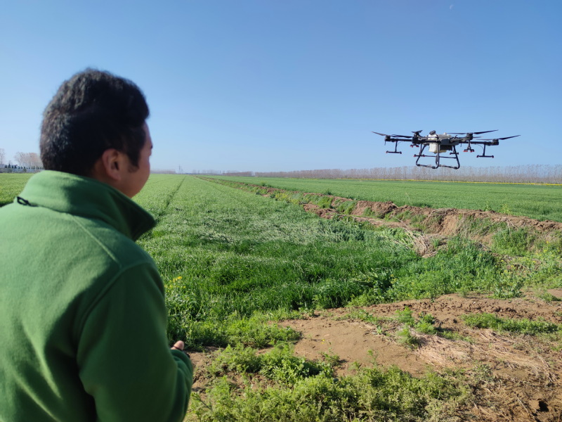 當(dāng)前正值小麥拔節(jié)抽穗的盛期,也是控制小麥莖桿長度的關(guān)鍵時(shí)期,由于過去小麥生長后期植株高、長勢(shì)茂,再用機(jī)械下田施藥時(shí)機(jī)身下的傳動(dòng)軸會(huì)傷到麥子,而且噴霧的霧化有時(shí)麥子上部噴不到,影響到了藥效的發(fā)揮,再說,小麥生長后期機(jī)械下田,對(duì)麥苗還容易造成不必要的損傷。特別是遇到后期田間受雨水浸泡機(jī)械難以下田不便作業(yè)時(shí),特別令人心焦。而現(xiàn)在,用植保無人機(jī)剛好可以有效解決這些難題。