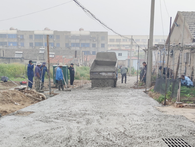 5月27日上午,我們在淮海農(nóng)場朝陽小區(qū)內(nèi)看到,一輛水泥攪拌車正在淮海路上將罐內(nèi)的水泥沙漿,正源源不斷地流進(jìn)小型拖拉機(jī)內(nèi),對已經(jīng)處理好的朝陽小區(qū)的基礎(chǔ)路面進(jìn)行鋪設(shè),引得了周邊小區(qū)職工居民的紛紛觀看,盛贊將這條約2米寬的破損小路拓寬到3.5米能進(jìn)車輛的大路,這條新道路的建成,將大幅度地提升職工居民的幸福指數(shù),徹底解決人們出行安全的問題。