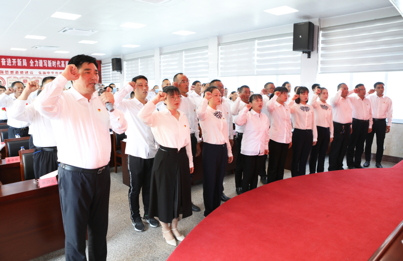 “我志愿加入中國共產(chǎn)黨、擁護黨的綱領(lǐng),遵守黨的章程……”在黨委書記徐中兵的帶領(lǐng)下,全體新老黨員高舉右拳,面向黨旗莊嚴宣誓,重溫入黨時對黨和人民作出的莊嚴承諾。