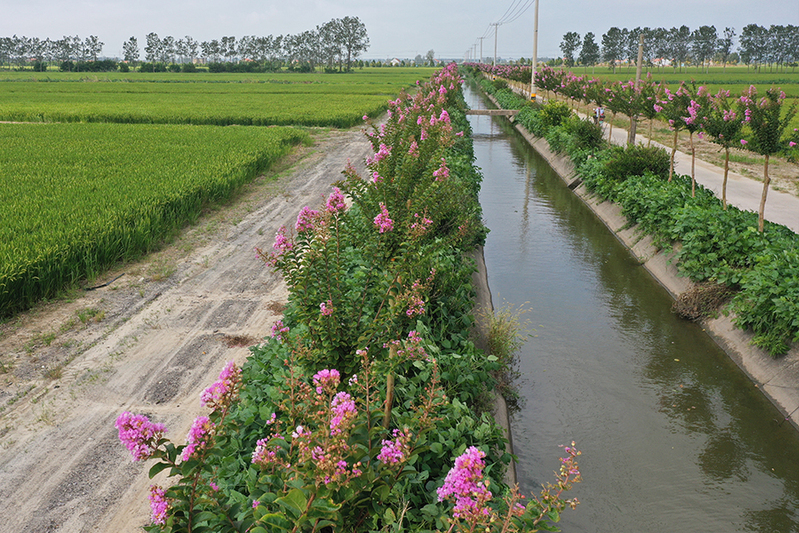 為在林業(yè)發(fā)展中大力推進(jìn)“三化”——彩色化、珍貴化、效益化,打造綠色生態(tài)花園農(nóng)場(chǎng),合理利用棲地資源,臨海農(nóng)場(chǎng)公司與南京林業(yè)大學(xué)共建渠上紫薇實(shí)驗(yàn)基地,分別在第7、10、11大隊(duì)的防滲渠兩邊種有3112棵喬木化紫薇,喬木紫薇是非常具有觀賞價(jià)值的植物,與水稻示范田、農(nóng)田風(fēng)機(jī)構(gòu)成了具有農(nóng)場(chǎng)地域特色的景觀。