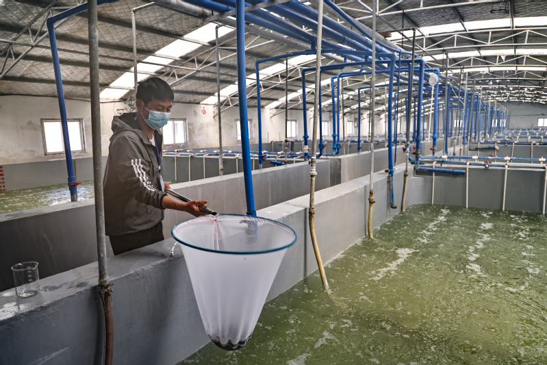 面對當(dāng)前國內(nèi)嚴(yán)峻的疫情形勢,東辛水產(chǎn)積極與疫情低風(fēng)險地區(qū)加強業(yè)務(wù)合作,在逆境中尋機遇、謀發(fā)展,咬定確保產(chǎn)銷蝦苗17億尾,力爭20億尾這一目標(biāo)。堅定信心,嚴(yán)把種源關(guān)、培育關(guān)和銷售關(guān),嚴(yán)格生物防控,精細(xì)管理,精準(zhǔn)飼喂,把育苗生產(chǎn)作為提升水產(chǎn)養(yǎng)殖效益和培植產(chǎn)業(yè)發(fā)展龍頭的關(guān)鍵舉措。育苗團隊與檢測團隊聯(lián)動,強化種苗源頭管控,引進優(yōu)質(zhì)種源,采用先進建棚方式,以更科學(xué)便捷的進排水和通風(fēng)降溫措施,減少病源殘留對育苗的影響,蝦苗繁育單批提高產(chǎn)能8千萬尾。在育苗過程中,從親本采購到親本產(chǎn)仔,從幼體布池到仔蝦培育,派駐技術(shù)人員進行無縫對接跟蹤,每批仔蝦采購前在產(chǎn)地進行化驗檢測,從源頭杜絕或減少病害傳播,確保仔蝦品系正宗。采用生態(tài)育苗標(biāo)粗,對餌料、水質(zhì)和土壤進行定期檢測,嚴(yán)防病從口入。出苗前進行嚴(yán)格檢測,合格后方可出場,出具檢測報告,確保每位客戶買到種源純正、品牌正宗、質(zhì)量合格的優(yōu)質(zhì)蝦苗。