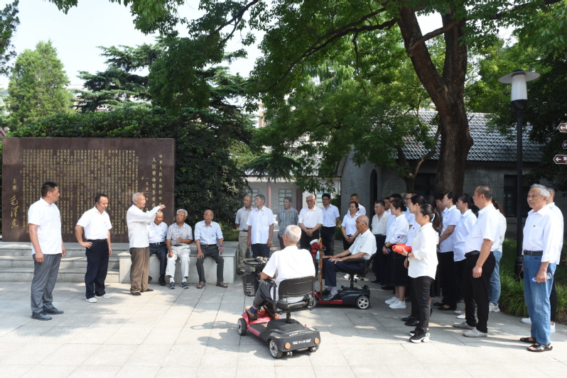 據(jù)悉,自七月以來,已經(jīng)九旬高齡的姚少林、吳錦生、胡福生等老軍墾,他們以陳列館為背景,用各自的語言,聲情并茂的為黨團員干部和青少年們,講述了他當年為了對美好家園建設(shè)的夢想,與天斗,與地斗,克服了重重困難的考驗,義無反顧進行“生根、立足、建場”的歷史。同時農(nóng)場各支部也紛紛讓支部的老軍墾們,走上支部的講堂,講述建場歷史,講述精神傳承,他們留給后人的軍墾精神,是農(nóng)場人最為寶貴的精神財富,值得我們大家好好地發(fā)揚傳承,讓紅色文化和軍墾基因在淮海這塊大地上代代相傳,永不停息。圖為在毛澤東主席命令碑文前老軍墾在講先輩們開墾農(nóng)場土地資源的故事。