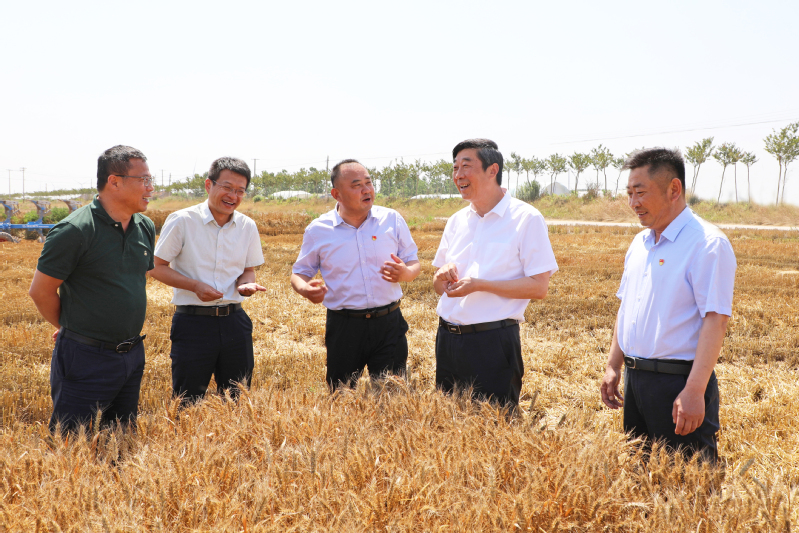 6月12日下午,集團(tuán)公司黨委書記、董事長魏紅軍到東辛調(diào)研。他強(qiáng)調(diào),要深入扎實開展學(xué)習(xí)貫徹習(xí)近平新時代中國特色社會主義思想主題教育,把“學(xué)思想、強(qiáng)黨性、重實踐、建新功”總要求貫穿始終,堅持問題導(dǎo)向,深化調(diào)查研究,持續(xù)提高發(fā)現(xiàn)問題、研究問題、解決問題的能力,以實實在在的工作業(yè)績檢驗主題教育成果。魏紅軍針對東辛漁光互補(bǔ)項目前期規(guī)劃中可能存在的問題,前往灌云洋橋漁光一體光伏發(fā)電項目現(xiàn)場考察,詳細(xì)了解相關(guān)經(jīng)驗做法。隨后在東辛小麥制種大縣項目現(xiàn)場聽取“三夏”工作情況介紹,并對東辛“三夏”工作取得階段性勝利表示肯定。魏紅軍強(qiáng)調(diào),要堅決抓好糧食安全這件頭等大事,決不能有任何松勁歇腳的思想,牢牢把握主動權(quán),確?!叭摹比〉萌珓佟R罅嵤┘瘓F(tuán)公司強(qiáng)核戰(zhàn)略和種業(yè)振興行動,將小麥制種大縣項目打造成東辛的一張名片。邁上新征程,東辛要聚焦影響高質(zhì)量發(fā)展突出問題,進(jìn)一步樹立“謀大事、干大事、成大事”的鮮明導(dǎo)向,抓好產(chǎn)業(yè)發(fā)展,強(qiáng)化內(nèi)部管理,提升經(jīng)營效益,不斷增強(qiáng)核心競爭力,在事關(guān)全局、事關(guān)發(fā)展、事關(guān)長遠(yuǎn)的研究謀劃、難題破解上取得新進(jìn)展新成效,奮力在墾區(qū)高質(zhì)量發(fā)展和現(xiàn)代化建設(shè)中繼續(xù)當(dāng)好排頭兵,為打造現(xiàn)代農(nóng)業(yè)航母“江蘇