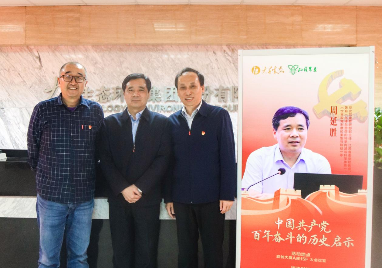 2021年4月22日下午,江蘇省農(nóng)墾投資管理有限公司黨支部和大千生態(tài)環(huán)境集團(tuán)股份有限公司黨支部聯(lián)合組織黨史學(xué)習(xí)活動(dòng),特別邀請(qǐng)了中共江蘇省委黨校黨史黨建教研部副主任周延勝教授為黨員們作《中國共產(chǎn)黨百年奮斗的歷史啟示》主題講座。
