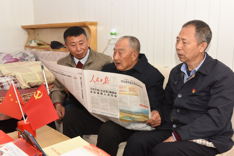 這堂特殊的黨課,讓家庭黨員們再一次感受到這位老共產(chǎn)黨員的初心和使命,同時后輩的黨員也在向老人送、讀黨史書籍、講述新中國的快速發(fā)展和淮海農(nóng)場及至家庭中,呈現(xiàn)出一個又一個的新變化時,張國裕老人聽了笑臉如花般地豎起大姆指連聲說“好、好、好!”