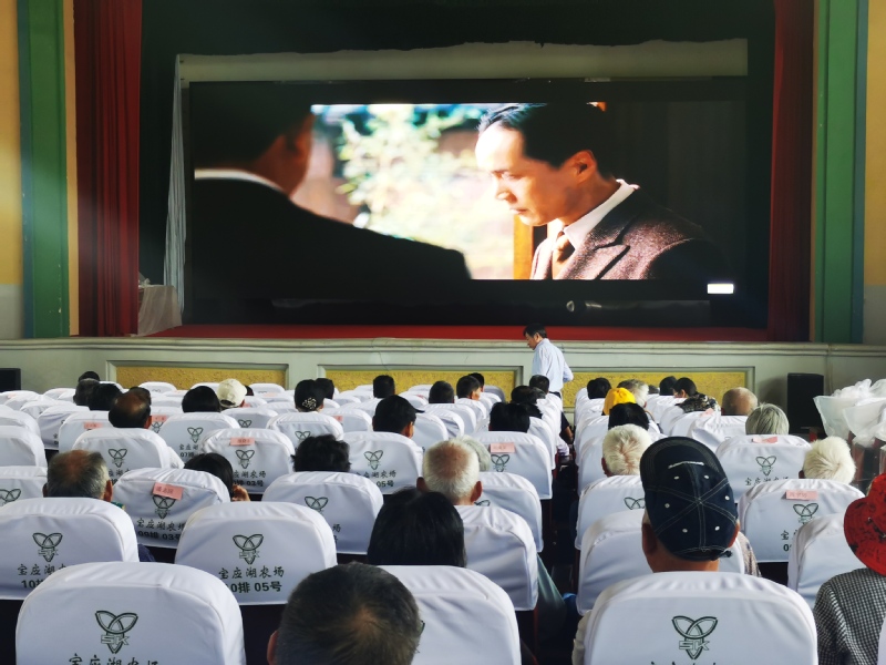 “下午來看看電影真好!禮堂裝修后干凈整潔,新安裝的電子屏播放效果好,聲音大,圖像清楚?!睂殤?yīng)湖農(nóng)場公司迎湖居委會(huì)85歲職工胥福宏開心地說。
