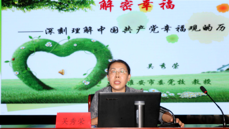 淮安市委黨校副教育長、教授吳秀榮應(yīng)邀到場為廣大黨員職工作《解密幸福--深刻理解中國共產(chǎn)黨幸福觀的歷史演進》專題宣講。“我們黨的百年歷史,就是一部踐行黨的初心使命的歷史,就是一部黨與人民心連心、同呼吸、共命運的歷史?!毙v以習近平總書記講話為開篇,依次從幸福的本質(zhì)、中國共產(chǎn)黨幸福觀歷史演進、中國共產(chǎn)黨的成功原因剖析三個方面逐層推進,著重從物質(zhì)生活和精神生活相統(tǒng)一、享受相統(tǒng)一、個人幸福和集體幸福的統(tǒng)一分析了中國共產(chǎn)黨幸福觀歷史演進,剖析了中國共產(chǎn)黨成功的原因,宣講還從四個方面詳細闡述了習近平的幸福觀:傳承和發(fā)展了馬克思主義幸福觀、創(chuàng)新和超越了中國傳統(tǒng)幸福觀、激蕩了個人層面的奮斗精神、彰顯了領(lǐng)導層面的擔當氣派。宣講最后以“幸福,不僅僅是名詞;幸福,更是動詞﹍﹍”為結(jié)尾,給人啟迪,發(fā)人深思。