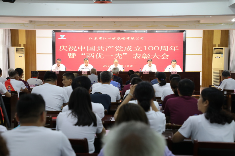 在黨的百年華誕即將到來之際,6月30日下午江心沙農(nóng)場有限公司在職工之家二樓會議室召開中國共產(chǎn)黨成立100周年暨“兩優(yōu)一先”表彰大會。農(nóng)場公司黨委書記、董事長朱江勝等班子成員,各黨支部書記,受表彰的先進(jìn)個(gè)人,部分黨員代表,駐場二三產(chǎn)單位負(fù)責(zé)人,機(jī)關(guān)、社區(qū)及分公司全體工作人員參加會議。大會由黨委副書記、總經(jīng)理、社區(qū)管理委員會主任薛忠主持。